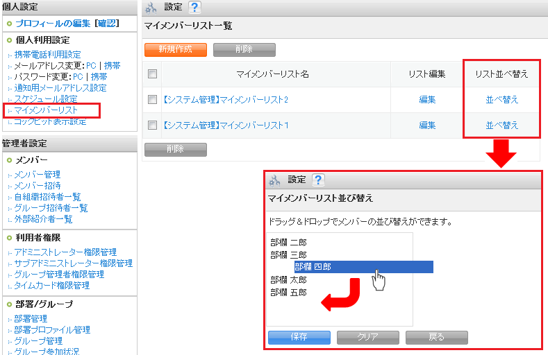 《マイメンバーリストの並び替え設定がドラッグ&ドロップ(以下D&D)対応になりました。》