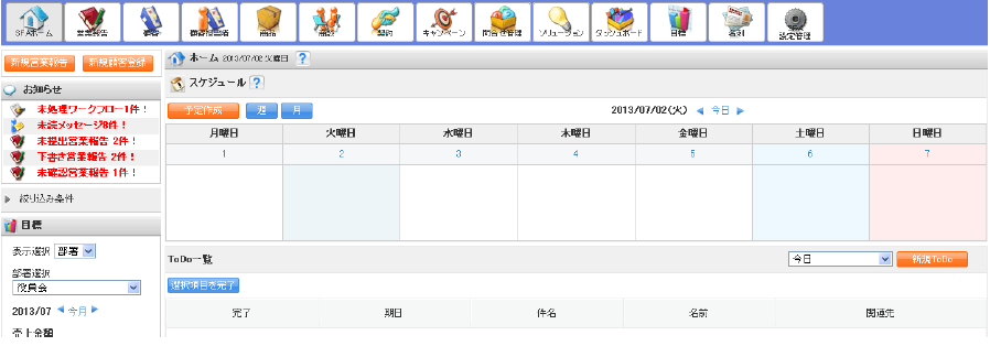 「非表示」設定時のSFAホーム画面