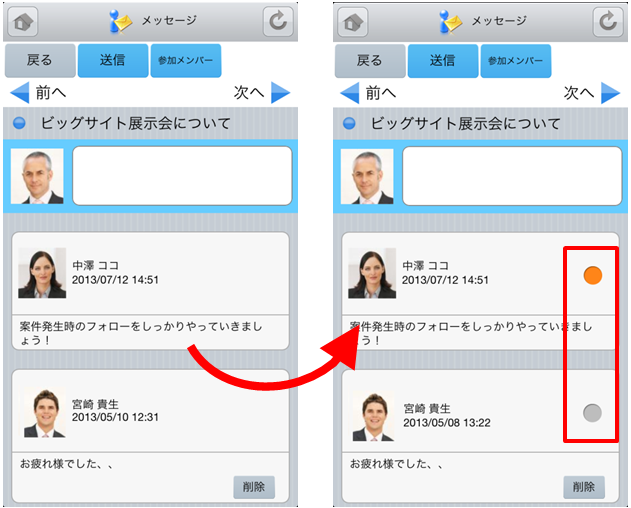 《GRIDY SmartPhone》メッセージに既読/未読のマークが表示されます。