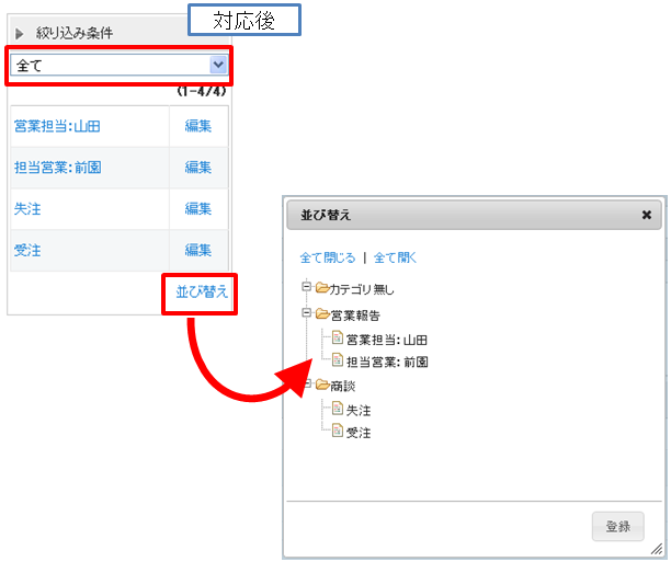 《GRIDY SFA》絞り込み条件の並び替えとカテゴリ分けが可能となります