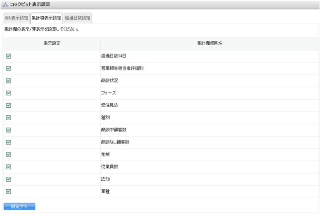 《GRIDY SFA》「SFA設定管理」にて、コックピットの表示設定が可能となります。