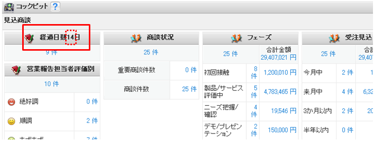 ・コックピット内「経過日数」の日数を任意の数値で設定することが可能です。